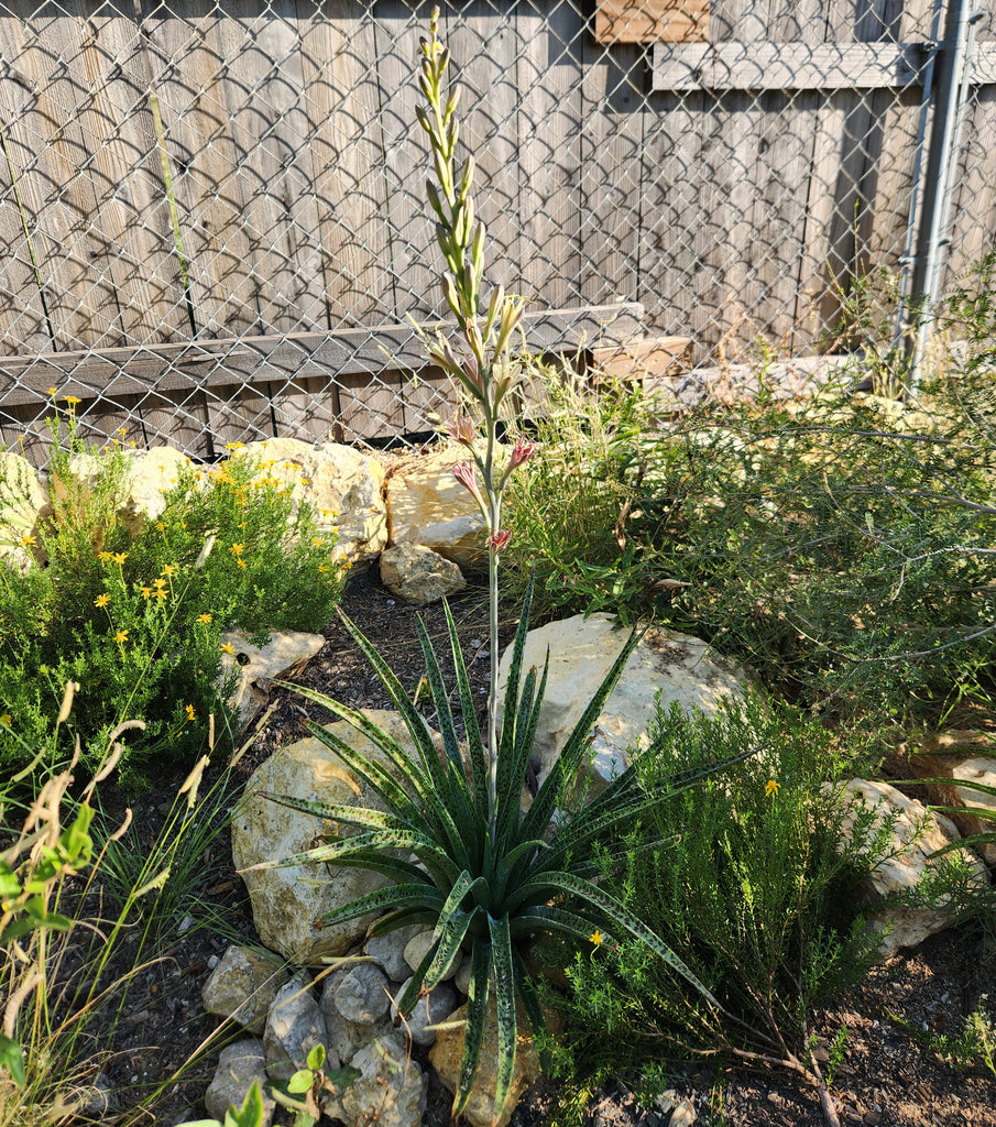 Texas Tuberose has fleshy leaves, somewhat akin to aloe leaves, that have irregular maroon spots. The flowers are creamy white to light pink, and age to a deep rose, and are fragrant. It needs well-draining soil and does best with some summer watering. It appreciates a light shade, especially during the hottest part of the day.