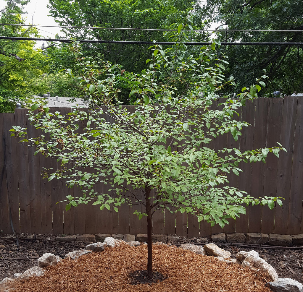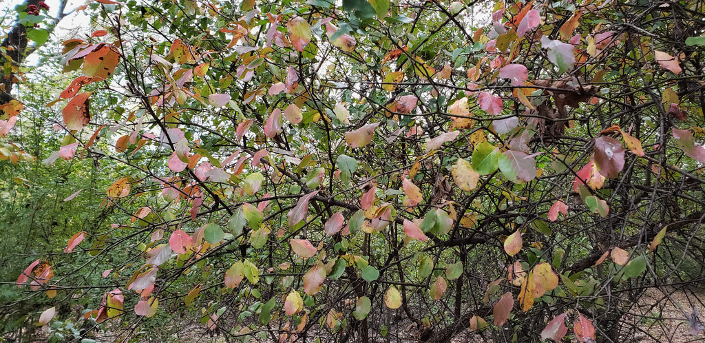 Rusty Blackhaw Viburnum has glossy leaves that turn to various shades of pink, red, orange and purple in the fall. It produces lovely creamy-white flowers in the spring which turn into fruit in late summer/early fall. Birds relish the fruit. It can grow in most any soil that is well draining. It can be grown as a single trunk tree or as a thicket. If single trunk is desired, any suckers should be promptly removed.